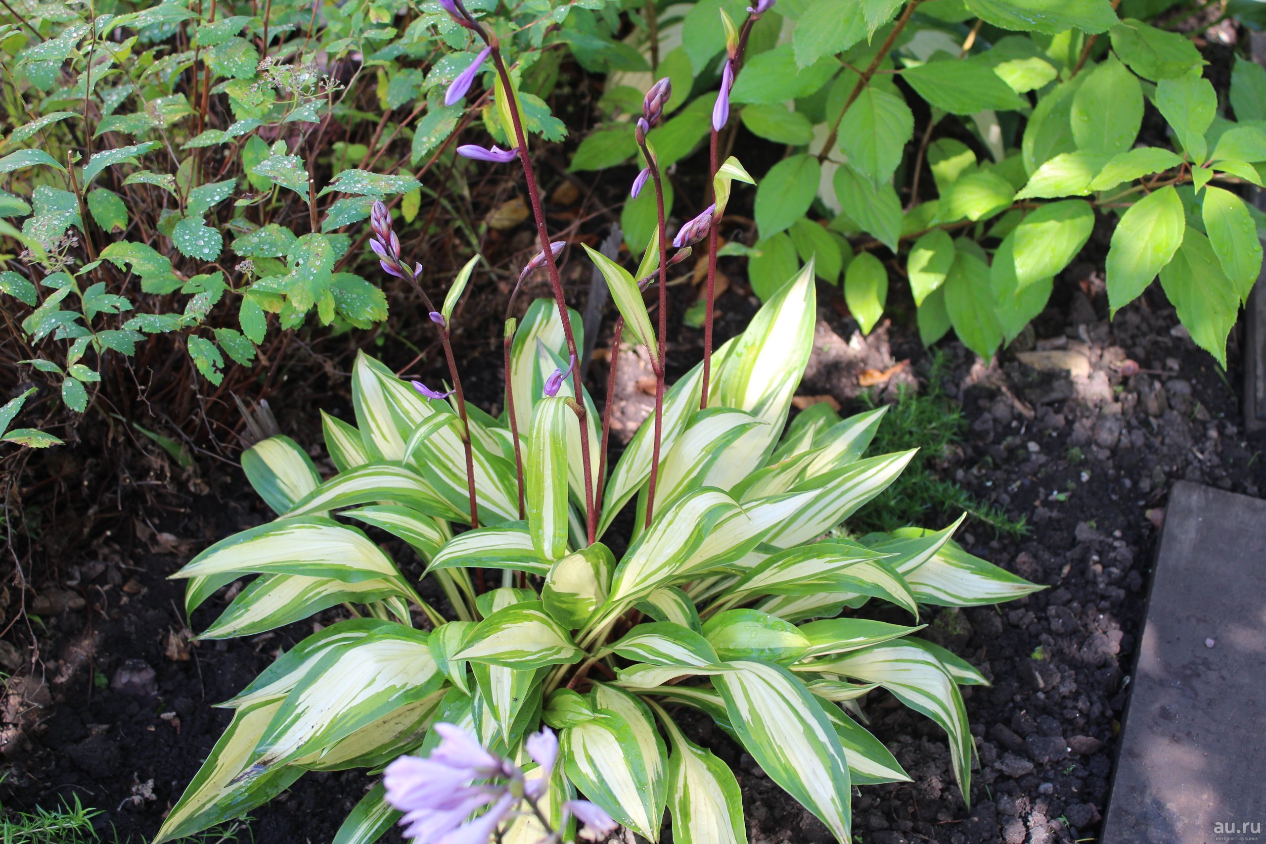 Сорт выведен в 1991 году. Несмотря на миниатюрные размеры, он довольно заметный в саду. Такое растение достойно украсит любой приусадебный участок. Купить недорого качественные саженцы можно в нашем интернет-магазине. Как выглядит растение? Куст прямостоячий и пышный, состоящий из множества листьев. В диаметре он достигает 35 см, а в высоту – до 25 см. Листовые пластинки тонкие, атласные. Окрашены они в кремовый цвет. По волнистым краям проходит темно-зеленая окантовка. Листья красиво возвышаются на изящных бордовых черешках. Цветение начинается в середине лета, в июле. Цветоносы формируются длинные (до 70 см), ярко-вишневого цвета. Цветки имеют колокольчатую форму. Лепестки светло-сиреневые. Применение в ландшафтном дизайне Это довольно популярный в ландшафтном дизайне сорт. Он активно применяется в тенистых садах. Многолетник размещают возле водоемов, на фоне стриженного газона, вдоль садовых дорожек и т. д. Советы по посадке и выращиванию Наиболее подходящее место для «обитания» хост – это полутень. Утром растение должно находиться в лучах солнца 2 – 3 часа, в обед – не более часа, а после обеда – 3 часа. В густой тени ухудшается декоративный вид растения – листва вытягивается и мельчает. Почва подойдет рыхлая и плодородная, с нейтральной или слабокислой реакцией. На дно посадочных ям насыпают дренаж из песка и дробленого кирпича. Приствольный круг щедро увлажняют и укрывают мульчей из древесной стружки или сухих листьев. Рассматриваемый сорт неприхотлив, вынослив и может расти без ухода. Достаточно лишь периодически проводить орошения. Положительные качества хосты Черри Берри Многолетник отличается следующими положительными качествами: длительное и пышное цветение; хорошая морозоустойчивость; доступная цена; активный рост; приятный аромат; крепкий иммунитет. Купить недорого хосты можно в интернет-магазине «Мой садовод». Просто отправьте понравившийся сорт в корзину, нажав на соответствующую кнопку. Мы бережно упакуем и максимально быстро доставим Вашу покупку ТК СДЭК или почтой России. Если возникнут вопросы или сложности с оформлением заказа, наши консультанты предоставят квалифицированную помощь. Мы гарантируем высокое качество посадочного материала и дорожим мнением каждого покупателя!